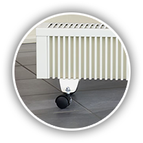 Notre gamme de produits est complétée par une sélection de pieds de haute qualité, avec ou sans roulettes, qui correspond parfaitement aux besoins de nos radiateurs.